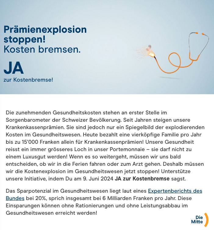 Weder die SP- noch die Mitte-Initiative lösen also die Kernprobleme im Gesundheitswesen, erhöhen aber immerhin den Druck auf das Parlament. Zur tatsächlichen Gesundung jedoch bräuchte es entschiedenere Reformen: etwa die Abschaffung der unsozialen Kopfprämien – und des Pseudomarktes im Krankenkassenwesen.